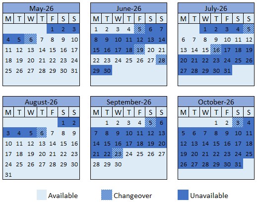 - We accept any day of the week for arrivals and departures.