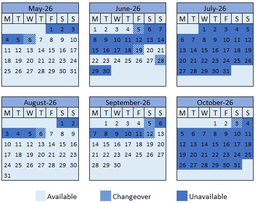 - We accept any day of the week for arrivals and departures.