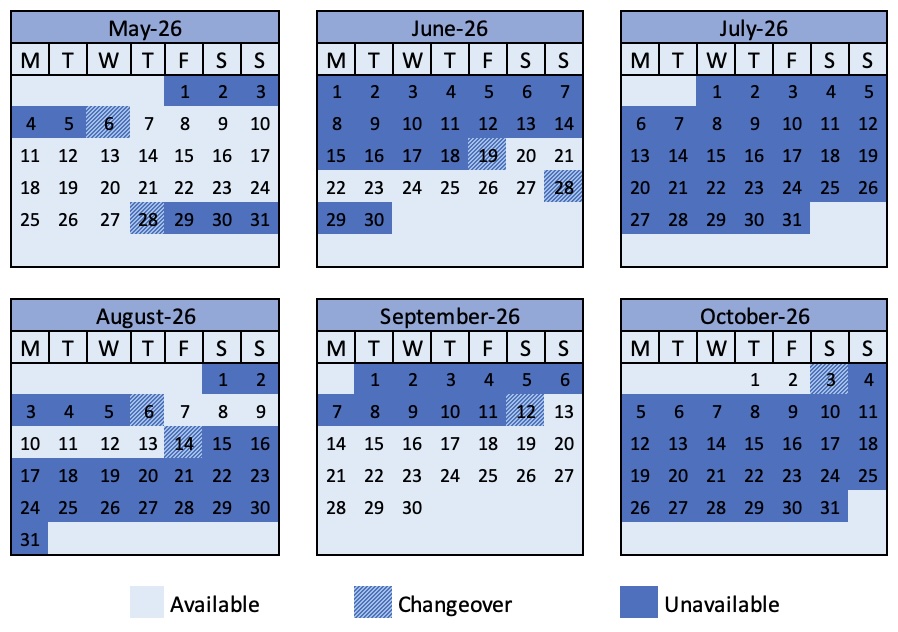 - We accept any day of the week for arrivals and departures.
